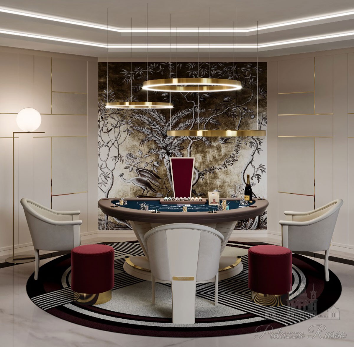 | Дизайн: | Руководствуясь принципами оригинальности дизайна и привлекательности форм, фирма Vismara Design создала стол, полностью соответствующий по духу захватывающей игре в блэкджек. Конструкция изготовлена из дерева с изящными вставками из нержавеющей стали; сукно подбирается согласно пожеланиям заказчика, как относительно цвета, так и композиции игрового поля. Гармоничное сочетание элементов создает многофункциональное изделие с исключительными эстетическими характеристиками. В дополнение к столу, Vismara рада предоставить клиентам набор из 500 фишек, подставку под фишки и специальный «башмак» для карт для дилера. |