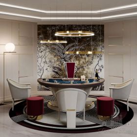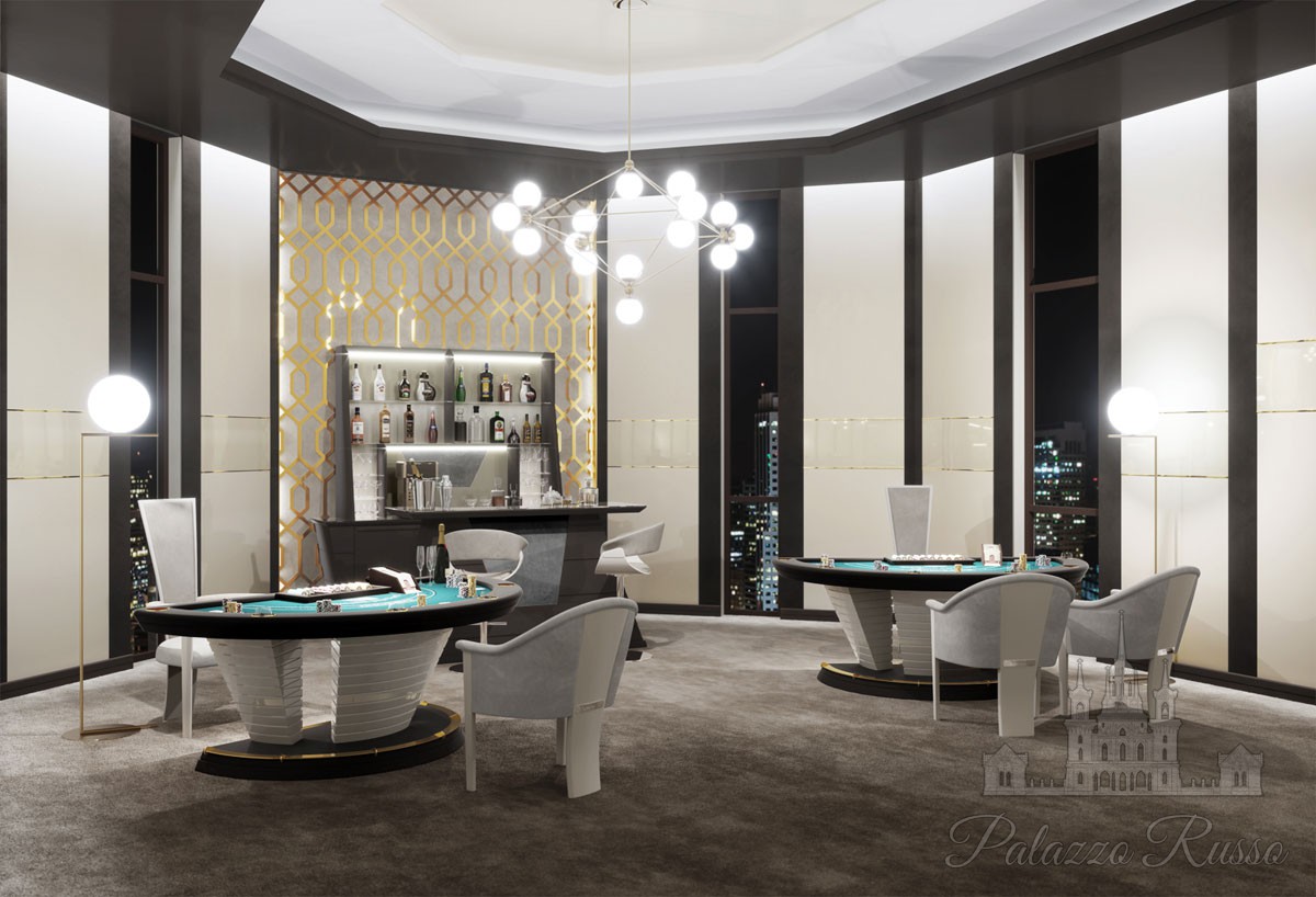 | Дизайн: | Руководствуясь принципами оригинальности дизайна и привлекательности форм, фирма Vismara Design создала стол, полностью соответствующий по духу захватывающей игре в блэкджек. Конструкция изготовлена из дерева с изящными вставками из нержавеющей стали; сукно подбирается согласно пожеланиям заказчика, как относительно цвета, так и композиции игрового поля. Гармоничное сочетание элементов создает многофункциональное изделие с исключительными эстетическими характеристиками. В дополнение к столу, Vismara рада предоставить клиентам набор из 500 фишек, подставку под фишки и специальный «башмак» для карт для дилера. |