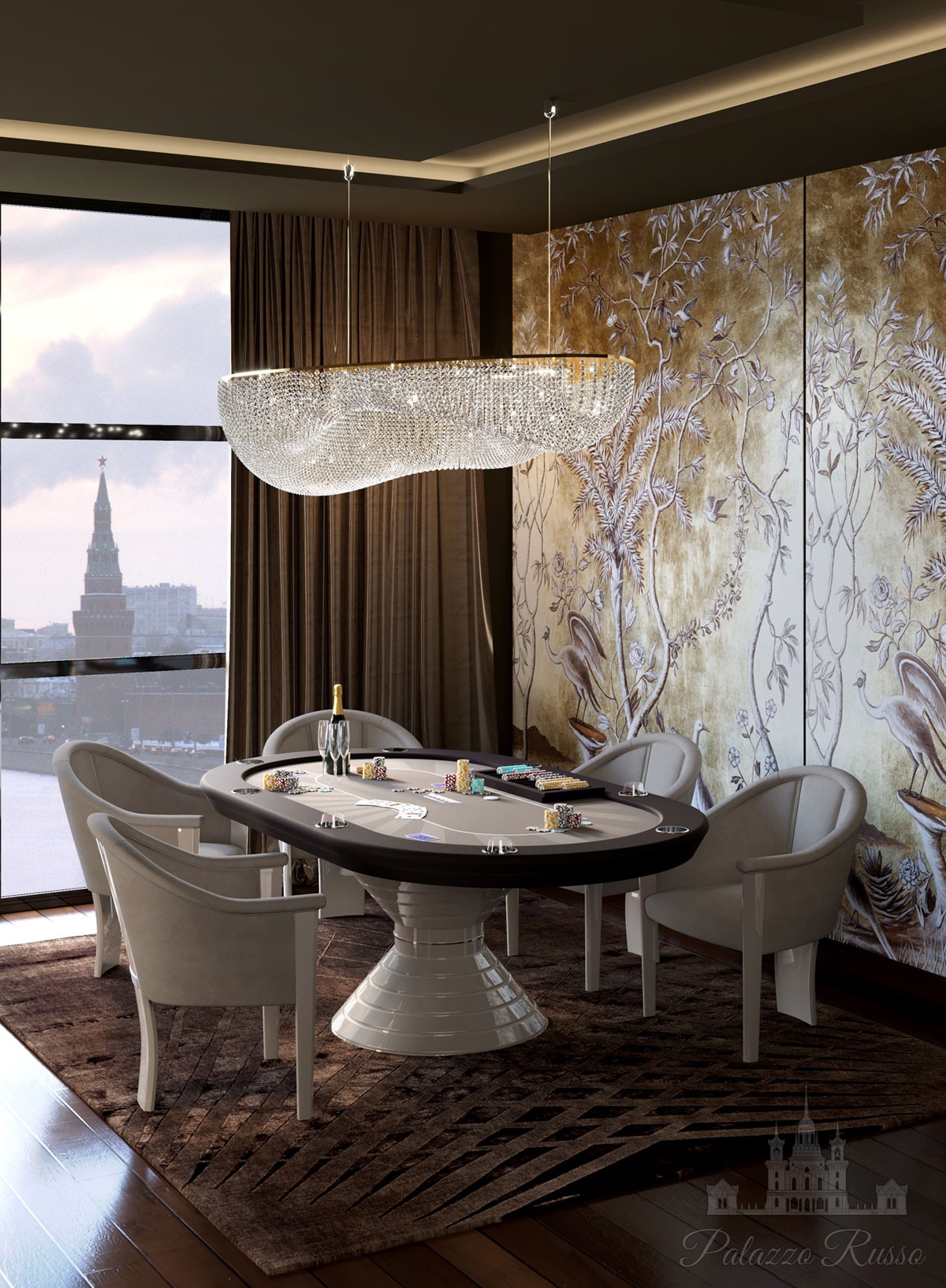 Покерный стол от Vismara полностью раскрывает концепцию домашних развлечений нашей фирмы. Элегантность, индивидуальный дизайн и верность традициям — отличительные особенности этой модели. База изготовлена из дерева с использованием профилей из нержавеющей стали, в бортиках расположены подставки для напитков и фишек. В конструкции игрового поля присутствует набивка, поверхность обтянута сукном; компоновка поля, а также цвет сукна из палитры Pantone полностью определяется заказчиком. В качестве дополнительной опции Vismara предлагает набор из 500 фишек и настольную подставку для дилера. Гармоничное сочетание элементов композиции делает этот стол идеальным фоном для незабываемых моментов, проведенных за игрой. |